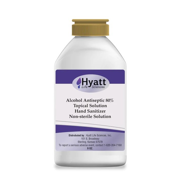 Hyatt Life Sciences Hand Sanitizer kills 99% of germs on contact. For external use only.